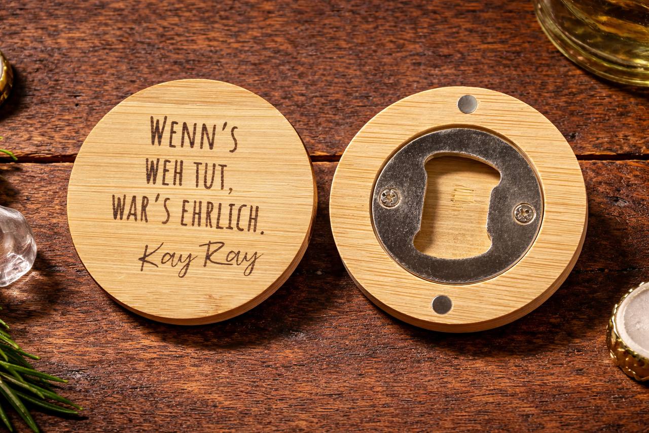 Flaschenöffner rund „Wenn’s weh tut, war’s ehrlich.“