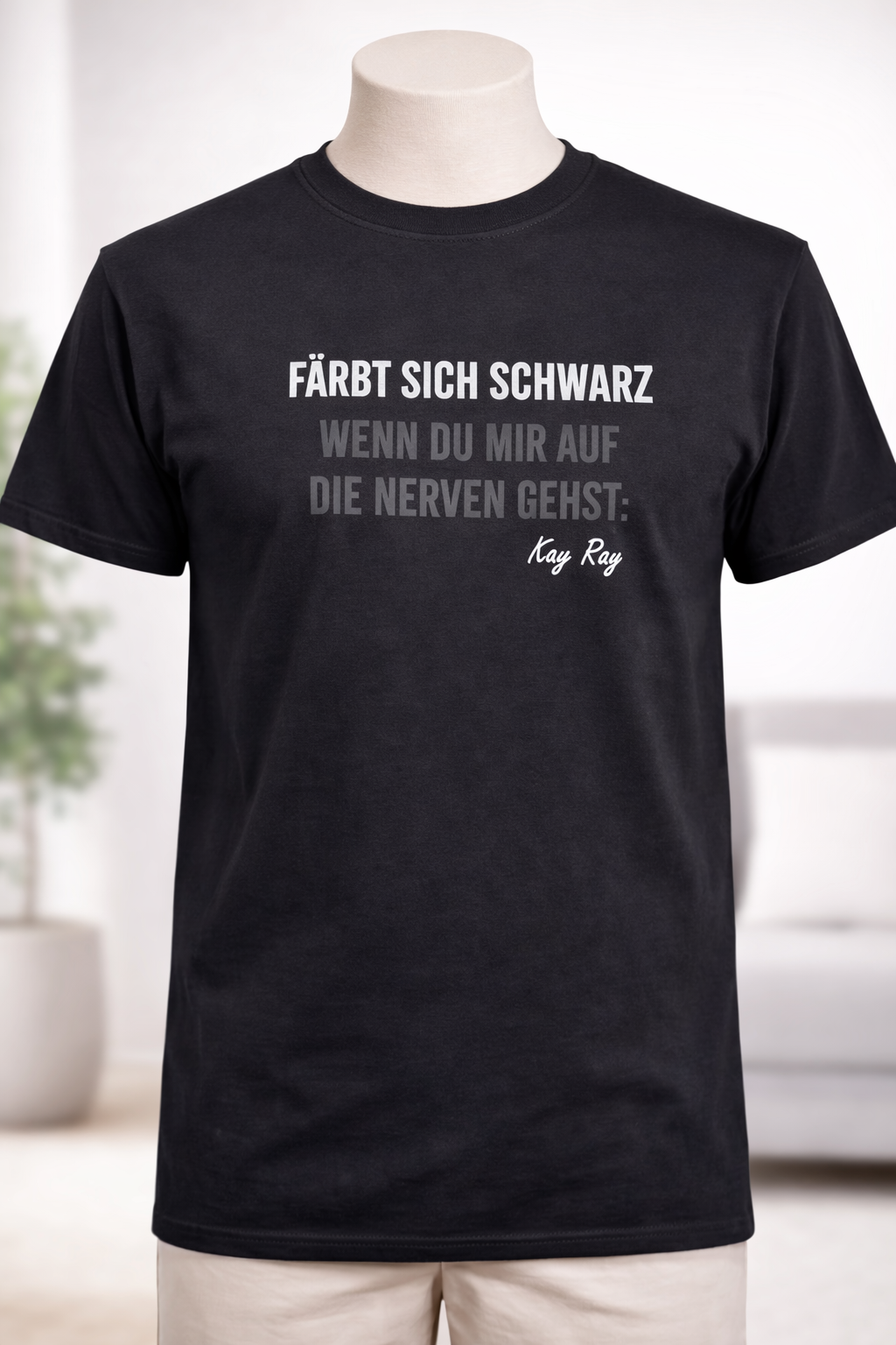 Manche Stimmungen brauchen keine Erklärung. Dieses T-Shirt bringt sie auf den Punkt – trocken, direkt und mit genau dem Humor, für den Kay Ray steht.