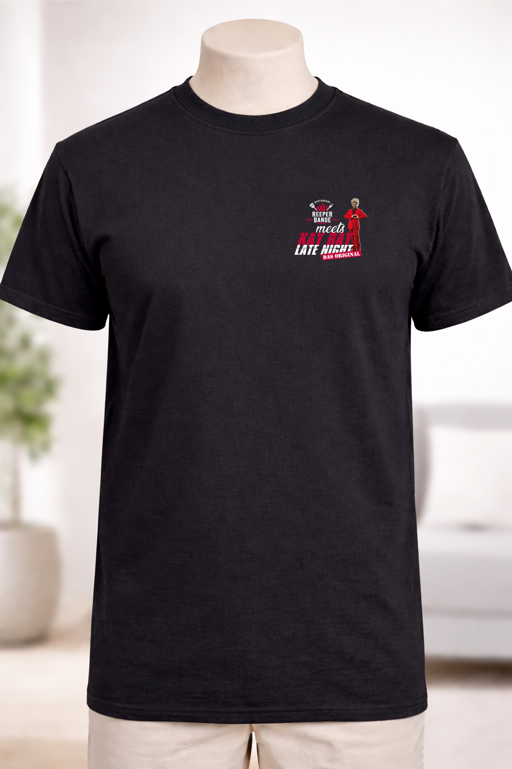 Dieses T-Shirt kombiniert Style mit Insider-Wissen: Logo auf der Vorderseite, Tourdaten der LateNight Show auf der Rückseite.